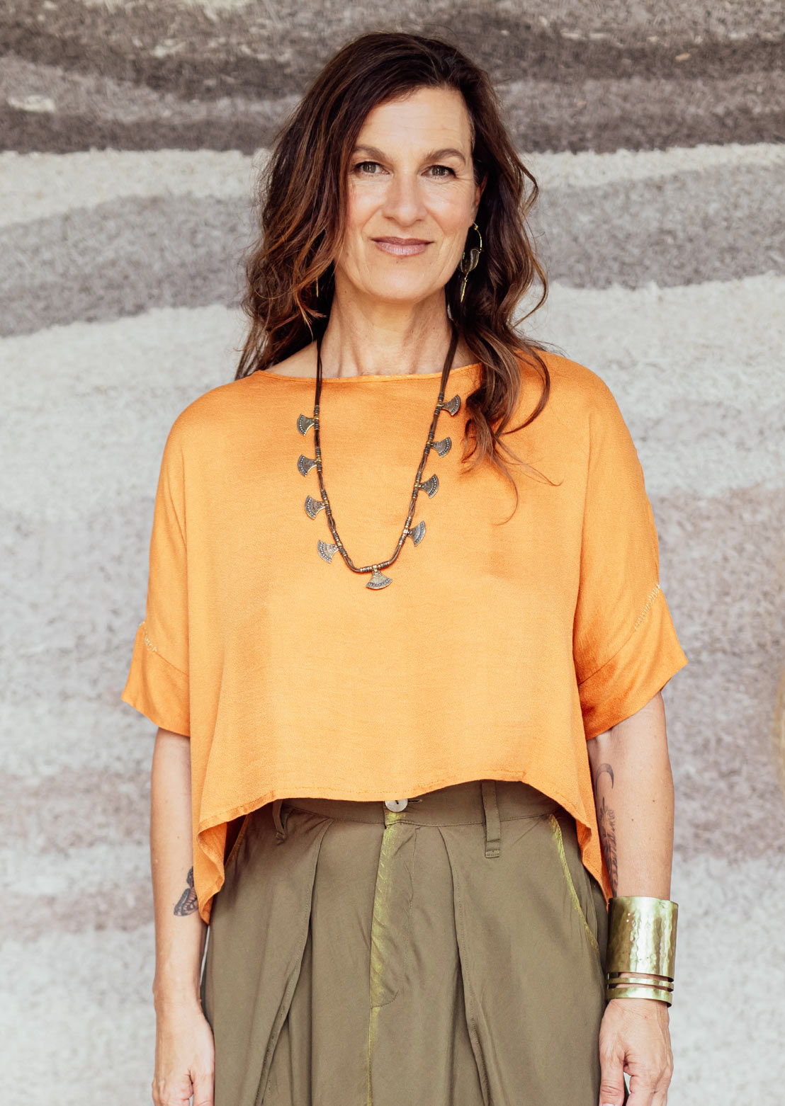 The Wabi Top is an easy-to-wear, wide-cut blouse made from an ultra-soft, silky rayon blend that feels light, fluid, and beautifully comfortable. Feminine yet casual, it pairs effortlessly with almost any bottom - from relaxed resort pants to tailored pieces.